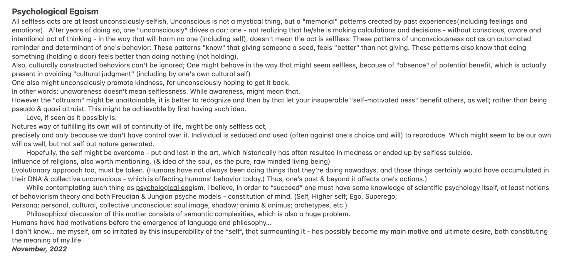 Psychological Egoism